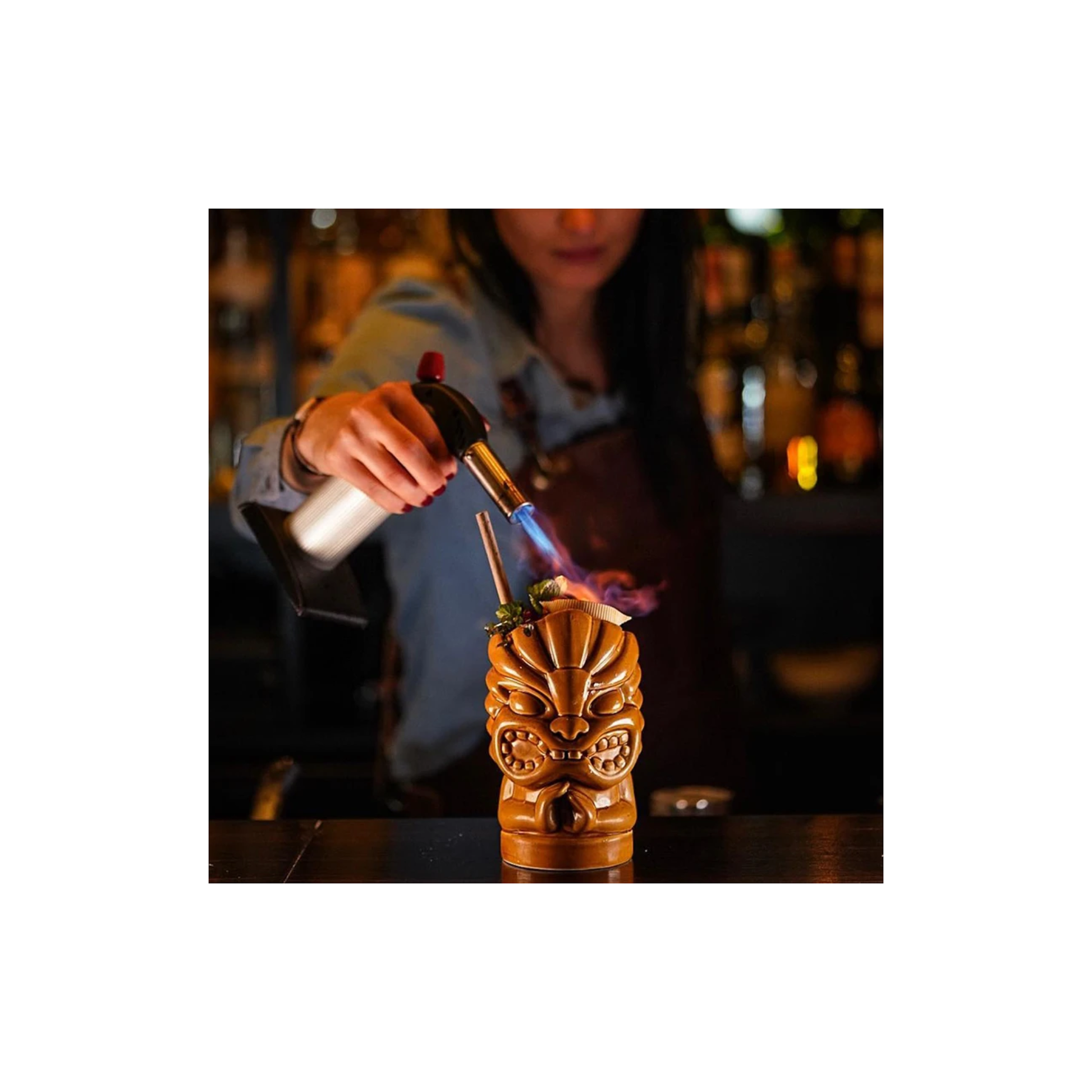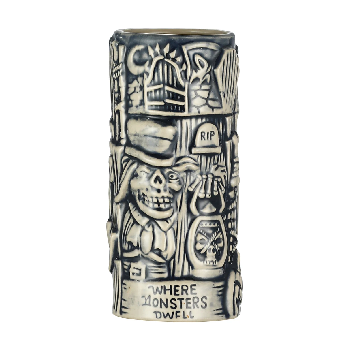 Tiki mugsare ceramic drinkware originating in mid-century Americantiki barsand tropical themed restaurants, believed to have been pioneered byDon the Beachcomber. The term "Tiki mugs" is a generic, blanket term for sculptural drink ware that depict imagery from Melanesia, Micronesia or Polynesia, and more recently anything tropical or surfing-related.